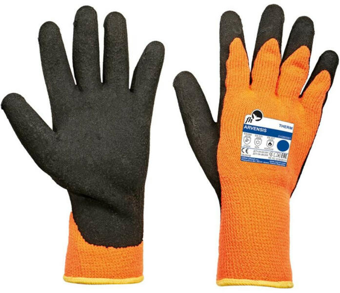 Melegen bélelt mártott védőkesztyű Téliesített kötött nylon védőkesztyű mikropórusos és páraáteresztő latex réteggel tenyéren és ujjakon. Rugalmas kötött mandzsetta. Az alapkesztyű anyaga: nylon A kesztyű mártás anyaga: latex Szín: Narancs Kiszerelése: 12 pár / csomag. Minimális rendelési mennyiség 1 csomag /méret. A gyári bontatlan karton pár kesztyűt tartalmaz