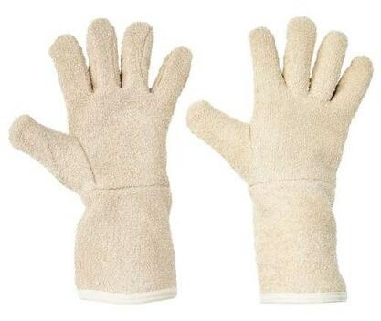 Vastag pamut frottírból varrt mandzsettás kesztyű. Teljes hossza: 35 cm.