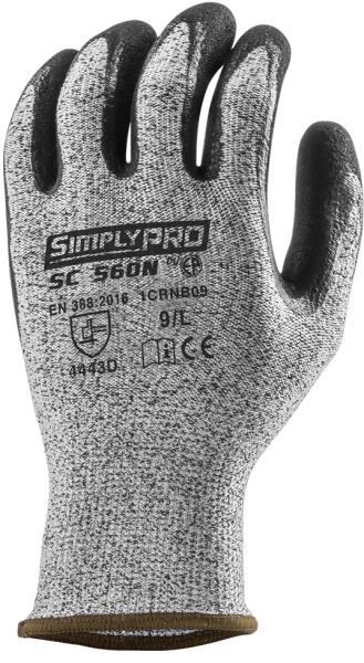 Tökéletes fogásbiztosság és tapadás, szellőző kézfej 13-as kötésű, maximális kopásállóságú, szürke színű, emelt szinten vágásbiztos és tartós HPPE + ásványi szál + PA és elasztán alapanyagú alapkesztyű tenyerén két rétegű mártással: alul sima fekete nitril, felül emelt szinten csúszásbiztos érdesített nitril réteg maximális szakítóerő elleni védelem
