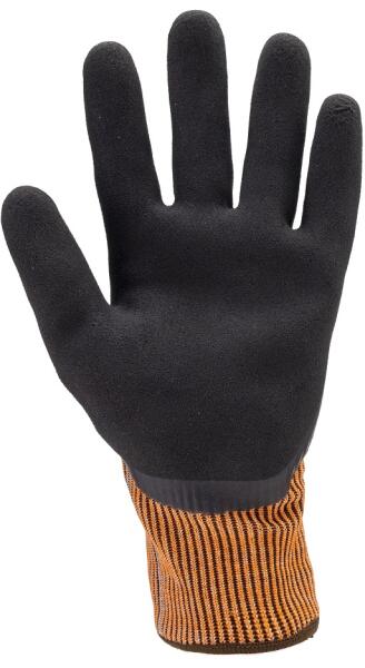 Kényelmes, teljesen kézre simuló, 15-ös kötésű kopásálló poliészter 15-ös kötésű kopásálló fekete poliészter alap tenyéren és hátul ökölcsontig sima narancs színű nitril mártás és a tenyerén fekete csúszásbiztos szemcsés nitril olajos környezetben is extra csúszásbiztosság kiemelkedő védelem a dermatitisz (bőrgyulladás) kockázata ellen, szilikonmentes kife