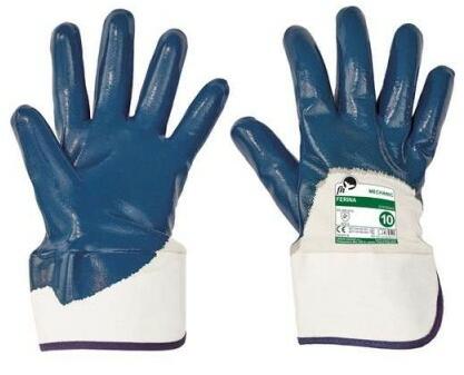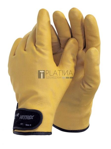 Nitrilbe félig mártott varrott pamutkesztyű, csúszásgátolt tenyérrész, széles mandzsetta, amely védi a ruhaujjat. A kesztyű erősen olajos környezetben, koptató hatású anyagokkal végzett munkára alkalmas. Készletinformáció:9 0 PÁR10 30 - 49 PÁR11 0 PÁR