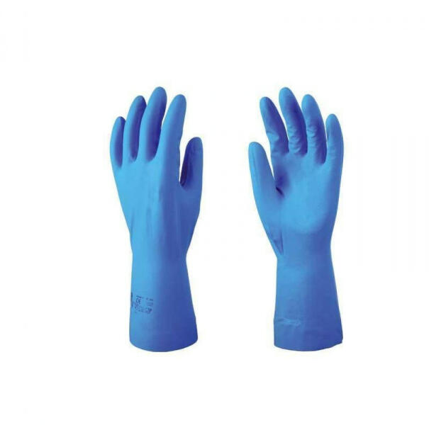 32cm hosszú kék béleletlen nitril kesztyű érdesített tenyérrel kék akrilonitril, Ecoline® változat 0,22 mm vastag, 32 cm hosszú, nem bolyhos belsővel mikroorganizmusok- és vegyszerek elleni védelem csúszás ellen érdesített tenyér MÉRET: 7, 8, 9 és 10-es CSOMAGOLÁS: 100 Minősítések EN420 EN374-1 374-2 374-3: JKL EN388: 1000