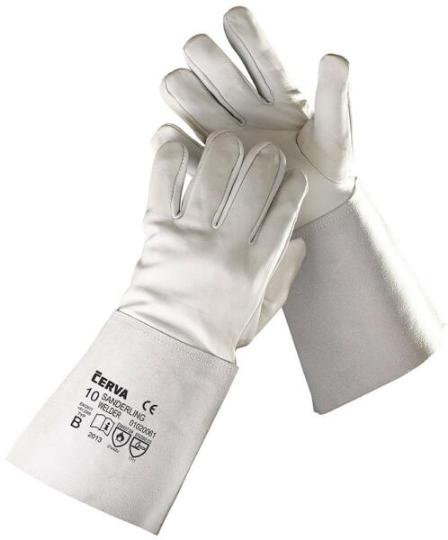 SANDERLING Hegesztőkesztyű Alapanyag: Kecskebőr Ez e kecskebőr hegesztőkesztyű megfelel az EN 407, EN 388, EN 12477 szabványoknak. Színkecskebőr hegesztő kesztyű 15 cm széles hasított bőr mandzsettával. Tanúsítvány: hegesztés – B típus. Minimális rendelési mennyiség 1 pár. A gyári bontatlan csomag 12 pár kesztyűt tartalmaz. A gyári bontatlan karton 120 pár kesztyűt
