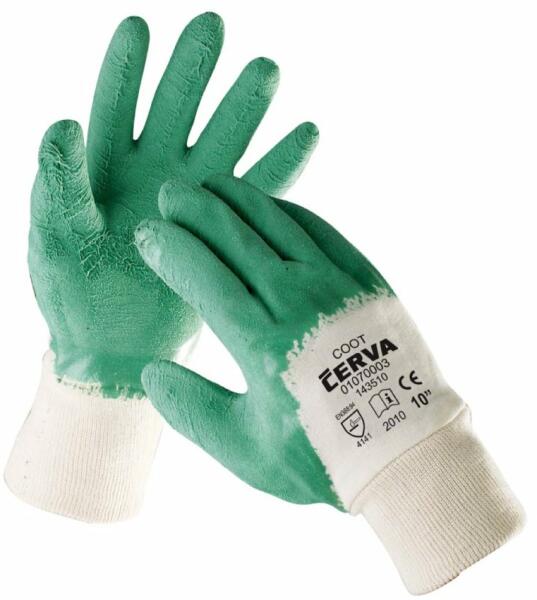 A termék megfelel az EN 388 szabványnak. Kötött pamutkelméből varrt, kaucsukba mártott tenyerű és ujjú zöld kesztyű csúszásgátló felülettel és rugalmas kötött mandzsettával. Ebből a védőkesztyűből 12 pár van egy csomagban, minimális rendelési mennyiség 1 csomag / méret. ( az egységcsomagot nem áll módunkban bontani) Szín:Zöld / Fehér 4.1. 4.1.