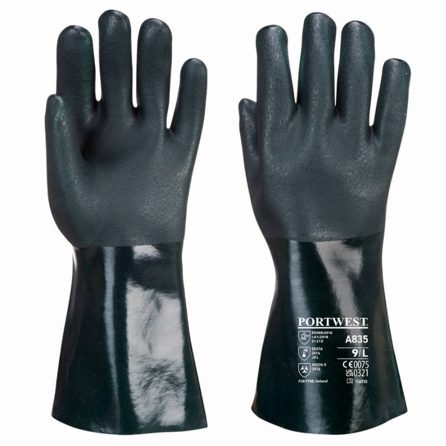 Duplán mártott PVC védőkesztyű csúszásmen-tesített tenyérrel. Actifresh jersey bélése kimagasló kényelmet biztosít. 3 méretben, 27, 35 és 45 cm készül.