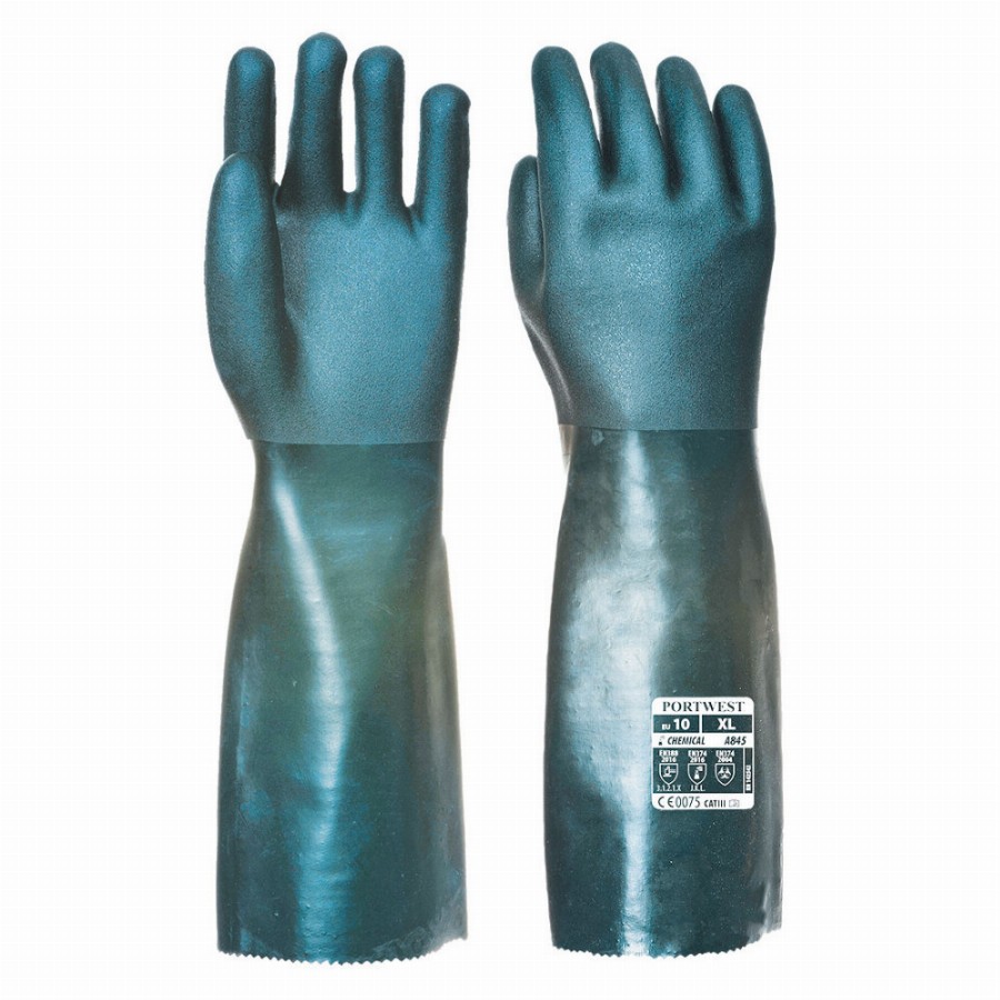 Duplán mártott vegyszerálló PVC munkavédelmi kesztyű csúszásmentesített tenyérrel. A strukturált tenyérbevonat a jobb tapadást segíti elő. Actifresh jersey bélése kimagasló kényelmet biztosít. Szárhossza 45 cm. Ez a típus elérhető 27 cm-es, és 35 cm-es szárhosszúságban is.