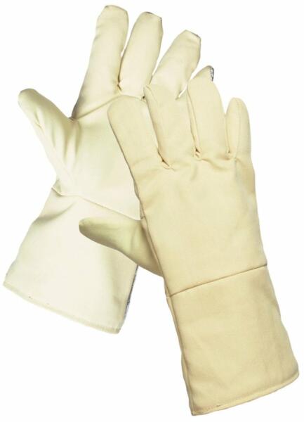 350 g/m2, hő- és vágásbiztos aramidszál, aluminizált külső réteg 350 g/m2 vastag, hő- és vágásbiztos aramidszál aluminizált külső réteggel véd sugárzó- (20kW/ m2 > 150 sec) és kontakt (300°C >5 sec) hőhatás, valamint közvetlen lánghatás (>7 sec) ellen forró fémcseppek elleni védelem hegesztő munkálatoknál GAN59892: 38 cm hosszú mandzsettás változat MÉ