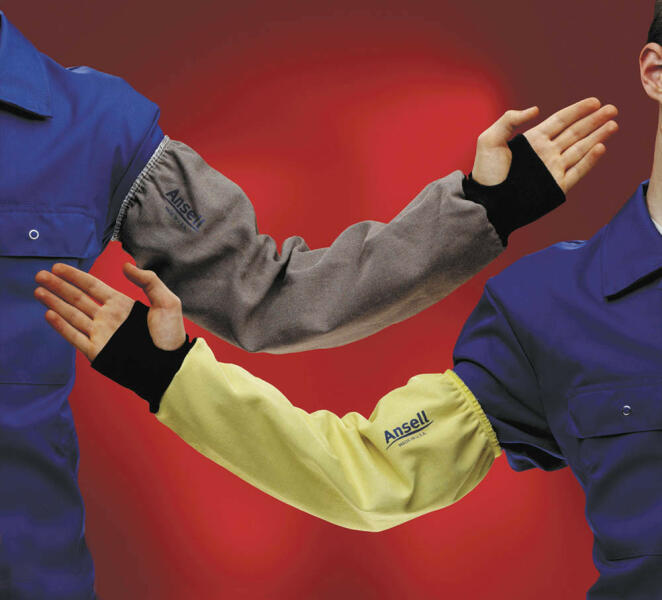 ANSELL 59-416 Safeknit guard 66 cm Tuff Weld anyagból készült, pamut réteggel bélelt hegesztő karvédő. A 66 cm hosszú 59-416 típus ellenáll a szikráknak és a fémfröccsenéseknek,