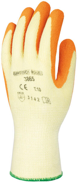 KÉTSZER MÁRTOTT, KONDENZÁLT NARANCS LATEXKESZTYŰ: kívül kopásálló poliészter, belül kényelmes pamut kötött kesztyűre kétszer mártott, kondenzált latex megerősített mutató- és hüvelykujj szellőző kézhát, rugalmas mandzsetta csúszás ellen érdesített tenyér narancs színű változat MÉRET: 8-as CSOMAGOLÁS: 120/12 EU szabvány: EN420, EN388: 3142