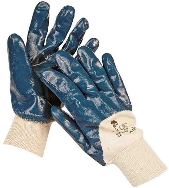 Cikkszám alatt megtalálja az aktuális készletinformációt a méret kiválasztását követően. Nitrilbe félig mártott varrott pamutkesztyű, csúszásgátolt tenyérrész, rugalmas mandzsetta, amely a szennyeződések bejutása ellen véd. A kesztyű erősen olajos környezetben, koptató hatású anyagokkal végzett munkára alkalmas.