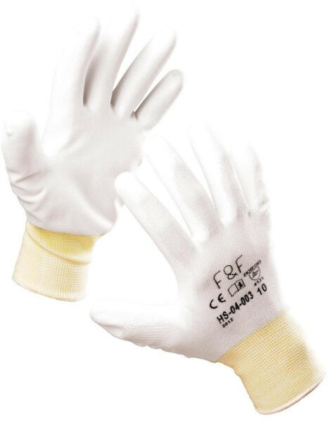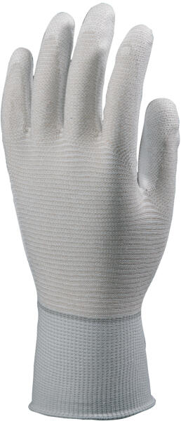 Kötött PES védőkesztyű vékony PU mártott tenyérrel, rugalmas mandzsettával. Szín: Fehér Méret: 9 Antisztatikus tulajdonságok: Nincs Mikroorganizmusok elleni biológiaia védelem: Nincs Csúszás elleni védelem: Van Villamos feszültség elleni védelem: Nincs Hideg elleni védelem: Nincs Higiénés eszköz: Nincs Hőhatások elleni védelem: Nincs Kesztyű típusa: Mártott védőkes