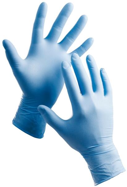 Egyszer használatos, púderezett nitril kesztyű.