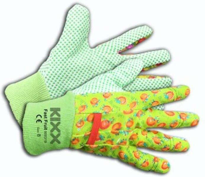 FAST FRUIT pamut kesztyű PVC célokkal zöld 8 Pamut kesztyű PVC pontokkal a jobb fogás érdekében. Mandzsettával. Felszívják a nedvességet. Ideális olyan tevékenységekhez, mint a növények átültetése. EN 420