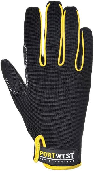 Ez a YATO munkakesztyű fekete műbőrből és fekete kötött pamutból készült. A markolatrész további megerősítései meghosszabbítják az élettartamot és védenek a hólyagok kialakulásától. Termékjellemzők : tenyér : szintetikus bőr felső rész: kétrétegű szövet spandexszel megerősítések a tenyér területén az ujjak tövénél megerősítések a tenyér területén me