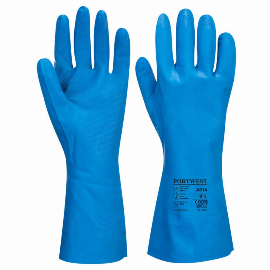 Extra hosszú 48cm vegyszerálló kesztyű kiválló védelmet nyújt számos oldószer ellen. A csúszásgátló mintázat kiváló tapadást biztosít száraz és nedves körülmények között. A 055mm vastagság kiváló kopásállóságot biztosít. Alkalmas számos iparágra például ipari karbantartásra tengeri fúrásra nyomdai munkára és vegyi anyagok ellen. CE minősítés Élelmisze