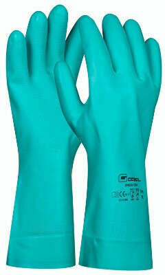 Nitril védőkesztyű gofri mintával a tenyerén a jó fogásért | Belül özönlött | jól ellenáll savakkal, lúgokkal, zsírokkal és olajokkal szemben | nagy szakítószilárdság | szilikon nélkül készült Anyag Nitril belül: pamut pelyhes Védelmet nyújt a következők ellen szennyeződés és nedvesség Mechanikai kockázatok az EN 388 szerint - teljesítményszintek Kémiai ellen