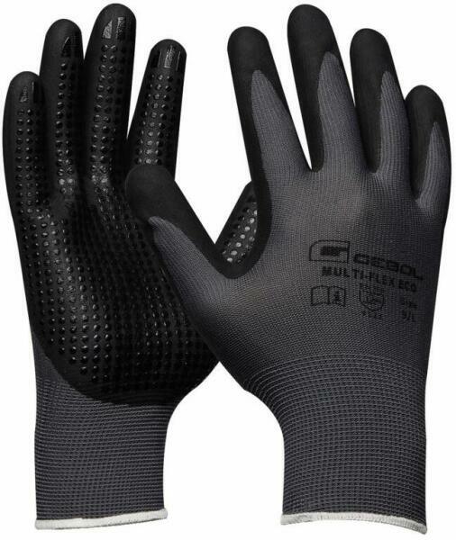 MULTI FLEX ECO munkakesztyű 10-es méretű - bliszter Saválló poliészter kesztyűk nitril tenyérrel. A tenyérben lévő nitrilszemek növelik a markolat tapadását. Megnövelt ellenállás olajokkal és zsírokkal.