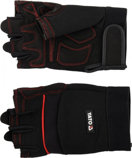 YT-74660 munkakesztyű fekete műbőrből és fekete pamut kötött anyagból. A markolatrészben lévő kiegészítő megerősítés meghosszabbítja az élettartamot és véd a tyúkszemek ellen. méret: 10 markoló rész: szintetikus bőr felső rész: kétrétegű szövet spandexszel megerősítés az ujjak tövénél megerősítés a tenyéren megerősített ízület a hüvelyk- és mutatóuj