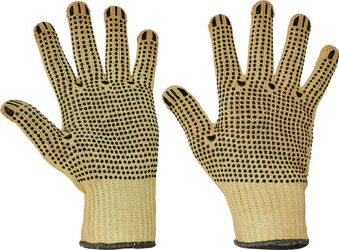 CHIFFCHAF Kevlar PVC pöttyös - 10 Mindkét kézen hordható kötött varratmentes kesztyű közepes Kevlar szálból, mindkét oldalon PVC pöttyözéssel.