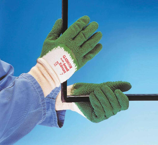 ANSELL 16-500 Gladiator - 10 Kötött pamutkelméből varrt, kaucsukba mártott tenyerű és ujjú kesztyű csúszásgátló felületkezeléssel és kötött mşizsettával.