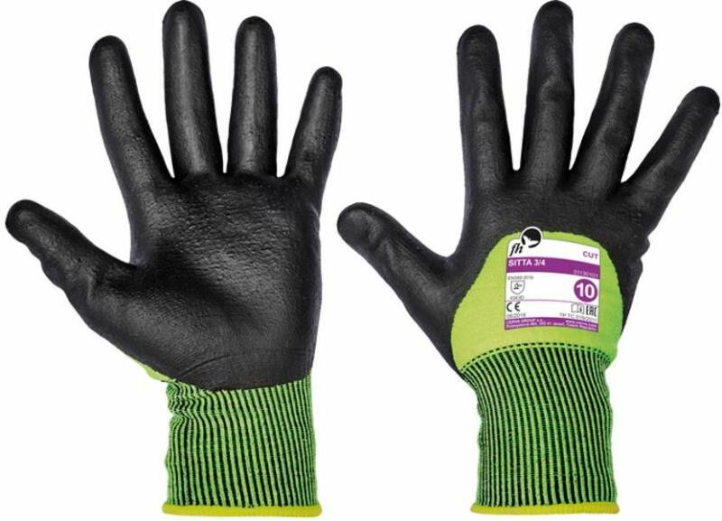 SITTA 3/4 Mártott nitril munkavédelmi kesztyű jellemzői: 3/4-ig nitrilbe mártott olajálló kesztyű. A kesztyű hatékonyan alkalmazható olajjal kezelt termékekkel való munkavégzés során. Felhasználási területei: műszeripar, gépgyártás, üveggyártás. Éles, sorjás szélű munkadarabokkal történő munkavégzésre ajánlott termék. 5-ös vágásbiztonsággal rendelkező kesz