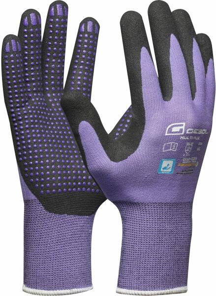 Kerti kesztyű "Multi Flex Lady" Gr. 8LeírásA nők kezei különleges védelmet igényelnek, ha poros és piszkos munkáról van szó. A kényelem és legáteresztő képesség teszi a Multi Flex Lady-t sokoldalúvá a munkakesztyűk között. Bőrgyógyászatilag tesztelt szerelő kesztyű nitril -mikroporos bevonatával és a tenyér nitril gombjaival ideális az érzékenységet igénylő mun
