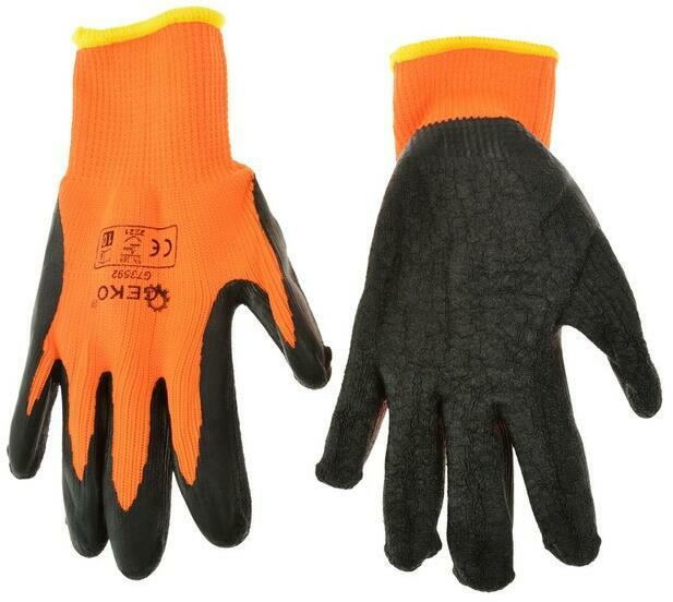 Vastag, mártott kesztyű. Felhasználási területe nagyon széles körű: -szerelés -kerti munka -raktározás -költözködés -felújítás Mérete: L (9-es)