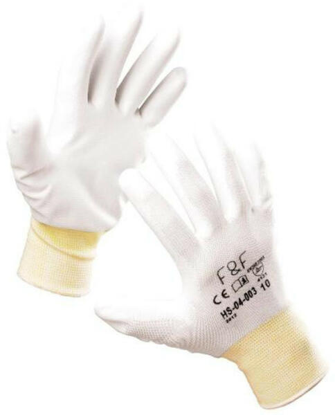Rendkívül olcsó mártott kesztyű FF BUNTING LIGHT mártott védőkesztyű Kötött PES kesztyű PU mártott tenyérrel, rugalmas mandzsettával. Alap kesztyű anyaga: poliészter ( PES ) Kesztyű mártás anyaga: poliuretán ( PU ) Szín: fehér Kiszerelése: minimálisan rendelhető mennyiség: 1 csomag. A csomag 12 pár kesztyűt tartalmaz, párankénti csomagolás nélkül. 1 karton 240 pá