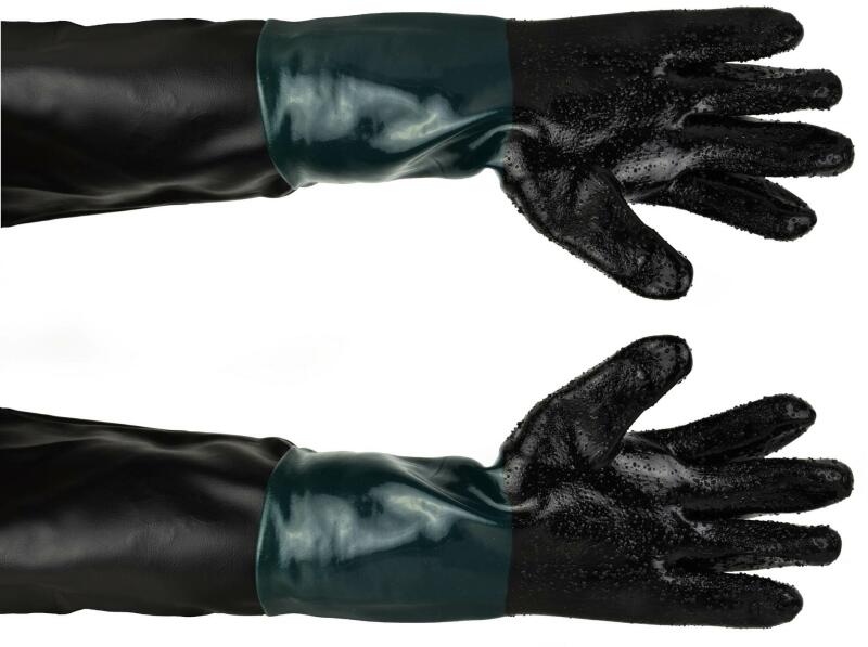 Leírás és ParaméterekA homokfúvó védőkesztyű kiválóan alkalmas kabinos és mobil homokfúvókkal való munka közbeni teljes védelemre. 630 mm hosszú, univerzális méretű. A tenyéren és ujjakon csúszásgátló érdesítéssel a megfelelő és biztonságos fogás érdekében. A többi védőfelszerelés mellett védőkesztyű használata a munka során fokozottan ajánlott, ugyani