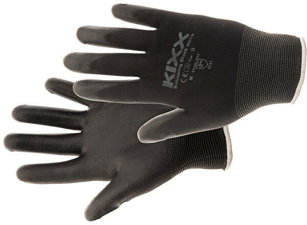 BOUNCING BLACK nylon kesztyű PU tenyérfekete, 11-es méret Kényelmes nylon kesztyű poliuretán felülettel. Rendkívüli fogásérzékenységüknek és ujjaiknak köszönhetően ideálisak könnyű bel- és kültéri házimunkákhoz. EN 420, EN 388: 2003