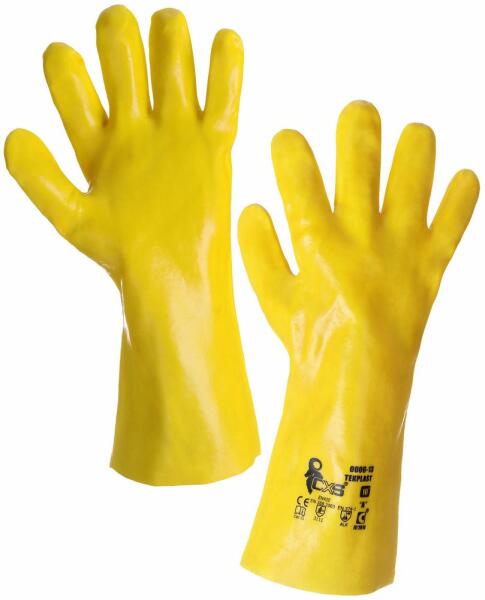 Védőkesztyű pamut béléssel és PVC bevonattal. Ellenáll az agresszív folyékony vegyi anyagoknak és az enyhe mechanikai veszélyeknek. Ideális savakkal és lúgokkal való tisztításhoz, laboratóriumban vagy vegyiparban. 10 univerzális méretben. CAT. III Normy: EN 420, EN 388, EN 374 Ehhez a kesztyűhöz letöltheted az EU által előírt szabványt. Ha nem tudod, hogy hogyan válassz