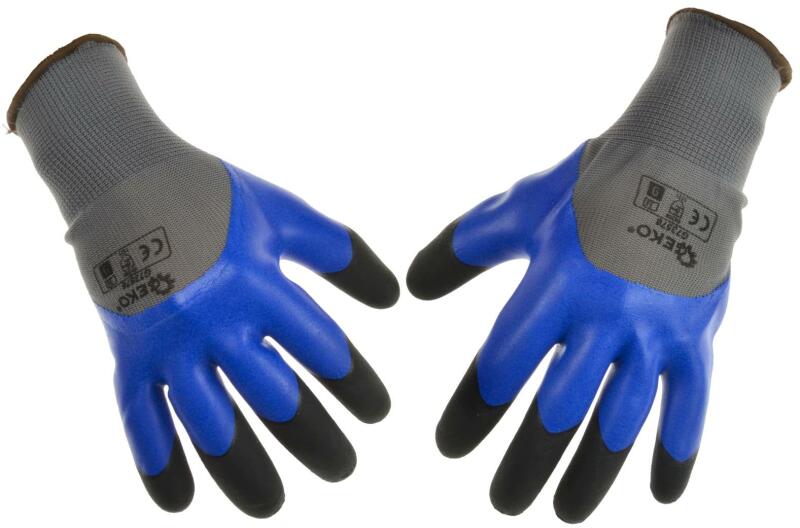 Munkavédelmi kesztyű poliészterből. Az egész tenyér habosított latexxel bevonva, ami rendkívül tartóssá teszi a kesztyűt és nem korlátozza a munkavégzést. Az ujjvégek megerősítve módosított, bordázott latexxel. A kesztyűket gyakran használják különféle mechanikai, kerti, építési munkákhoz, valamint háztartásokban. A termék jellemzői: méret 8 megerősített ujjv