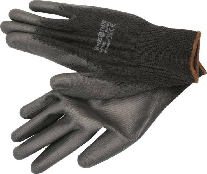 Védőkesztyű GCPU0110B. A kesztyű poliészterből (13-as öltés) készült, poliuretánnal bevonva, és tartós szegéllyel van ellátva. A kesztyűket fokozott kopásállóság jellemzi, kényelmesek és tökéletes tapintást biztosítanak tárgyak kezelésekor. Termék részletek: Méret: 10 Anyaga: poliészter és poliuretán Védelmi kategória: I fekete szín Csomag tartalma: 1 x pár ke