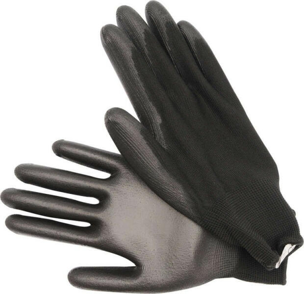 Védőkesztyű GCPU0109B. A kesztyű poliuretánnal bevont poliészterből (13-as öltés) készült, és tartós szegéllyel van ellátva. A kesztyű fokozott kopásállósággal rendelkezik, kényelmes és tökéletes tapintást biztosít a tárgyak kezelésénél. Termék részletek: Méret: 9 Anyag: poliészter, poliuretán Vé delmi kategória: I Szín: fekete Csomag tartalma: 1 x pár keszt