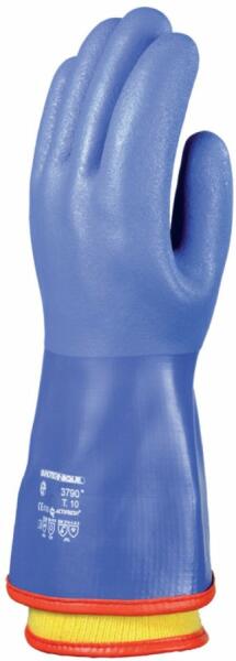 35 CM MÁRTOTT KÉK HIDEG ELLENI PVC KESZTYŰ: pamutra mártott kék PVC, csúszásbiztos, érdesített felsőrésszel hideg klíma hatása elleni finom, bolyhos belső bélés, Actifresh® kiképzés sav-, lúg-, olaj- és mikroorganizmusok elleni védelem 1,2 mm vastag, 35 cm hosszú, erős védőkesztyű MÉRET: 9-es CSOMAGOLÁS: 100/10 EU szabvány: EN420, EN388: 4131, EN374-1, 374-2 374-3: JK