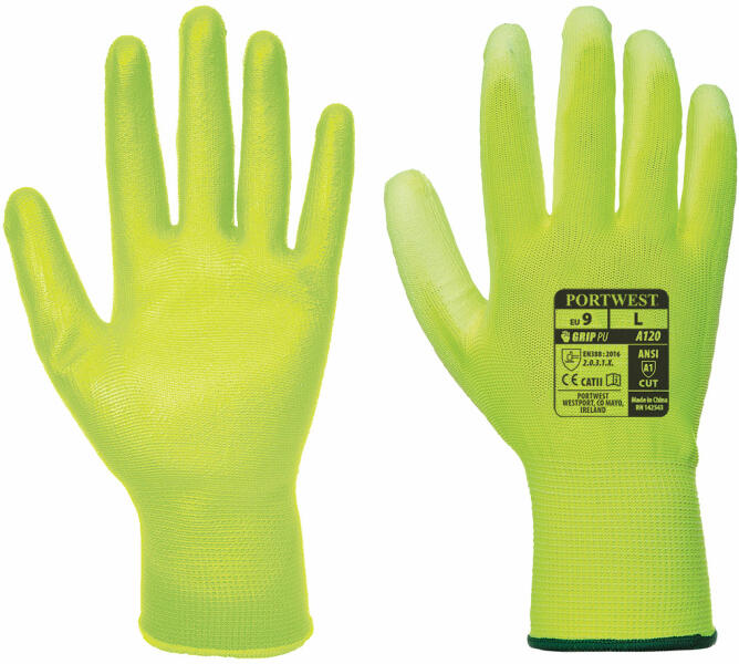 Alapanyag : Poliészter, Gumírozott, PU Javasolt felhasználás : általános anyagmozgatás Jellemzők Minőségi precíziós szerelőkesztyű finommechanikai munkákhoz, tenyéren PU bevonattal. Kényelem és kiváló fogásbiztonság. Tulajdonságok Sima PU bevonat, mely fokozott kopásállóságot biztosít. Tenyér bevonat, mely jobb fogásbiztonságot és szellőzést biztosít. Kötési s