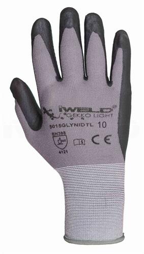 IWELD Gekko Light Lycra/nylon, nitril tenyér mártott pöttyös védőkesztyű - 10-es Nitril mártott védőkesztyűk, 8, 9, 10 méretekben. A nitril kaucsuk kiváló ellenálló képességet mutat az olajokkal, zsírokkal és motorhajtóanyagokkal szemben. Súrlódás- és szúrásállósága is kiváló. Ajánlott felhasználási terület pl. lemezmegmunkálás ahol egyszerre találkozunk olaj