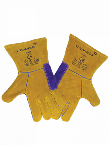 PARWELD megfordítható (jobbkezes/balkezes) hegesztő védőkesztyű hasított erős marhabőrből. - Dupla Kevlar® varrás - Egyedi szimmetrikus dizájn, - Takarékos - Minimum tenyér vastagság 1.2mm - Bélelt - Méter: 10-11 SZABVÁNYOK: BS EN 388:2003 BS EN 420:2003 BS EN 12477:2001 BS EN 407:2004