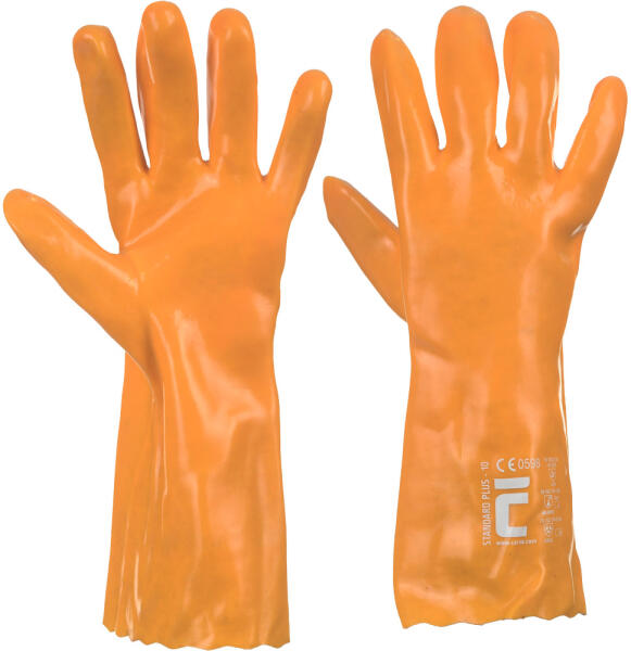 Anyag: Mártás: PVC Bélés: pamutSzabványok:EN ISO 21420EN 388 (4121X)EN ISO 374-1 (typeA A2 K6 L3 M3 P6 S5 T6)EN ISO 374-5 (virus)Jellemzők:Hossz: 35 cmMártott terület: TeleVegyi ellenállóképesség: T - Formaldehyde 37%, S - Hydrofluoric acid 40%, L - Sulphuric acid 96%, M - Nitric acid 65%, A - Methanol, K - Sodium hydroxide 40%, P - Hydrogene peroxid 30%