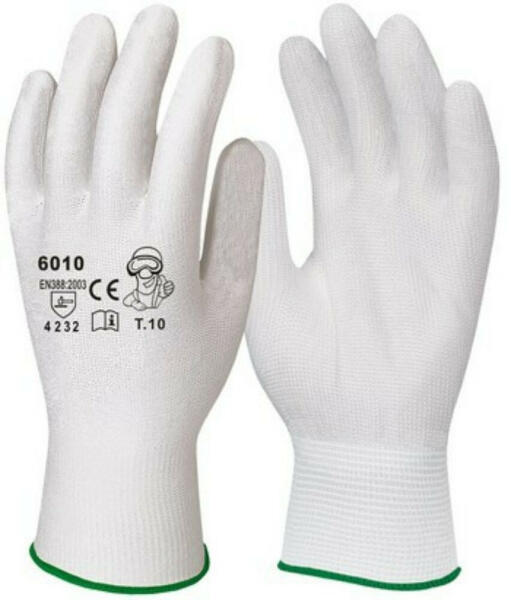 Kényelmes, kézre tökéletesen illeszkedő mártás nélküli kesztyű. fehér színű, 13-as kötésű, rugalmas nagy szakítószilárdságú 100% poliészter szál kényelmes, a kézre tökéletesen illeszkedik, kiemelkedően magas fogásbiztossággal és jó kopásállósággal MÉRET: 6, 7, 8, 9, 10 és 11-es EU szabvány: EN420, EN388:2016 4232X Minősítések: EN420, EN388: 4232X