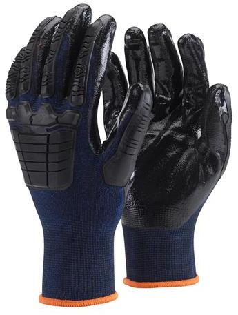 OP SHIELD nitril mártott csúszásbiztos védőkesztyű TPE protektorokkalPoliészter alapú, nitril tenyérmártott protektoros munkavédelmi kesztyű. Ha kiemelten fontos az erős mechanikai hatások elleni védelem és a kézfej beütődés elleni védelme, ez a protektoros TOP SHIELD védőkesztyű lesz a megfelelő választás. Méretek: L, XL, 2XLPoliészter alapanyag Fekete nitrilbe márto