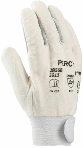A Percy munkavédelmi kesztyű minőségi kecskebőr tenyérrésszel és pamut kézháttal készült. A csuklórésze tépőzáras kialakítású. Mérettáblázat . A kesztyű megfelel az EN388: 1X21szabványnak. TULAJDONSÁGOK Anyag: Kecskebőr/Pamut Tépőzáras csukló Méretek: 8, 10