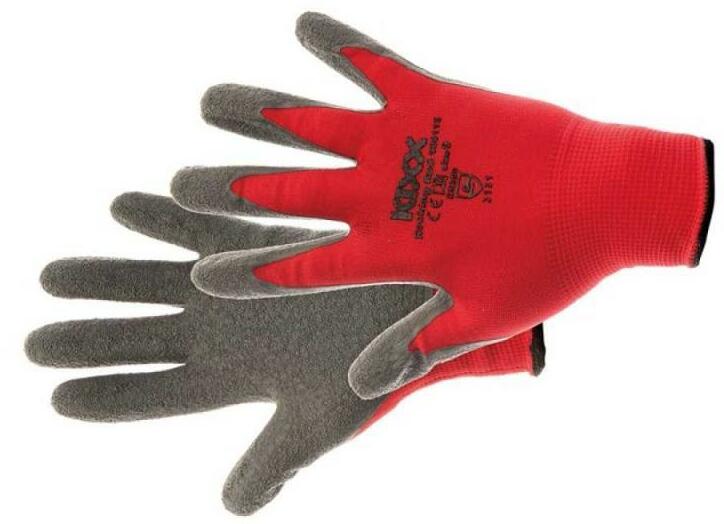 Tartós latex anyag. Zsír, olaj, vegyi anyagok ellen véd. Nedves és száraz munkakörnyezetben is megfelelő. Méhsejt mintázat.
