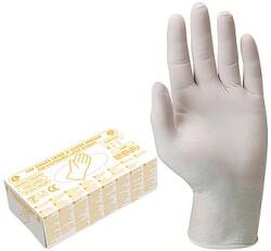 egészségügyi, Egyszerhasználatos latex kesztyű mikroorganizmusok elleni védelem mindkét kézen hordható, rugalmas anyag 23 cm hosszú, vékonyabb kivitelű 0,12 mm vastagság AQL 1,5