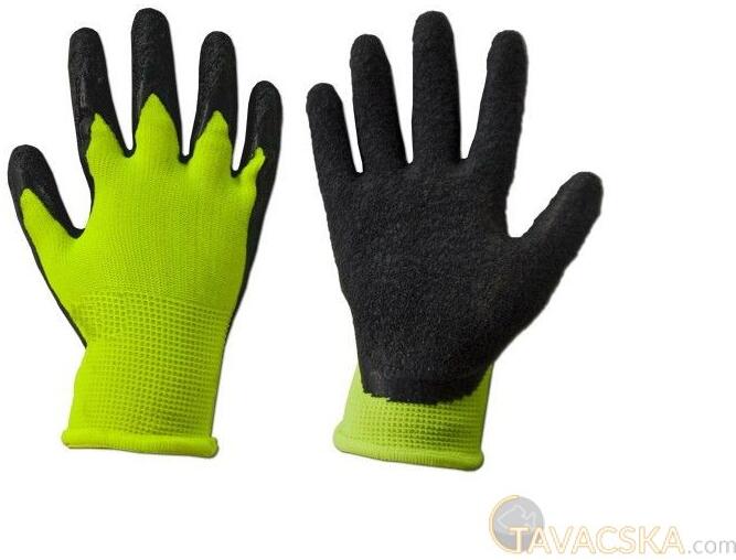 Bradas Lemon latex védőkesztyű, habosított latex bevonattal, poliészter anyagból. Nagy vágási és szakadási ellenállással.