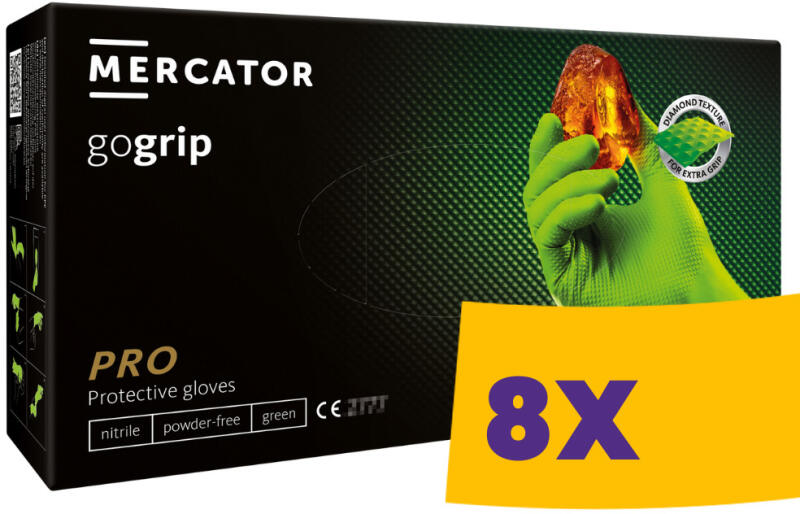 A Mercator GoGrip Green púdermentes nitril védőkesztyű a legmagasabb követelményeknek is megfelel. Egyedülálló 3D-s gyémánt textúrájának köszönhetően kiváló tapadást biztosít még nedves vagy olajos felületeken is, így biztonságosan dolgozhat anélkül, hogy aggódnia kellene a tárgyak kicsúszásának veszélye miatt. Erős, zöld színű nitril kesztyű kiváló tapadás