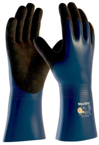 CSUKLÓIG KÉTSZER MÁRTOTT, KÉK NITRIL, MEREV KESZTYU:pamutra csuklóig kétszer teljesen mártott kék nitrilmerev, biztonsági mandzsetta, mártott kézhátnedves körülmények között is erős igénybevételre szánt védőkesztyűantibakteriális Actifresh? kiképzésméret: 9-escsomagolás: 100/10EU szabvány: EN420, EN388: 4221