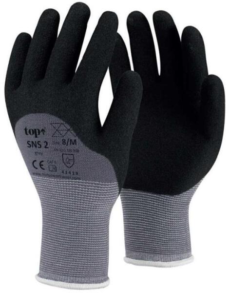 TOP SNS-2 homokszemcsés nitril habba ökölcsontig mártott védőkesztyű. Tulajdonságai:Kevertszálas alapú. Homokszemcsés nitril habba, ökölcsontig mártott. Kiváló fogásbiztonság. Szellőző kézhát. Csúszásbiztos. Könnyű és kényelmes. Gumírozott mandzsetta. Rendkívül strapabíró. EN 388, CAT II. Védelmi szintek: 4141XX12 pár/csomag, 240 pár/kartonMéret: 7-11 Kiknek aj