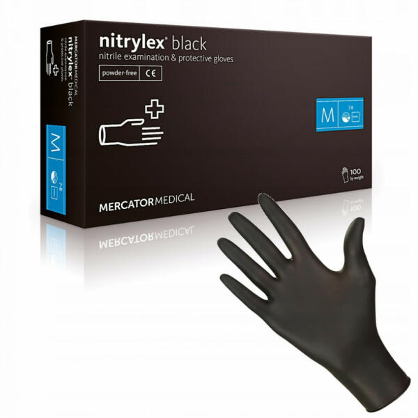 Púdermentes, fekete nitril kesztyű. Kiváló védelem, kényelmes viselet. A Mercator Nitrylex Black egy kiváló minőségű, fekete, púdermentes nitril vizsgálókesztyű. A nitril anyagnak köszönhetően kiváló védelmet nyújt a különböző vegyi anyagok, fertőző anyagok és irritáló anyagok ellen. A kesztyű texturált felülete biztos fogást biztosít, még nedves körülmények