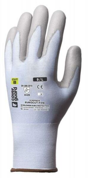 maximális szakítás- és kopás-, továbbá B színtű TDM vágásbiztosságú, 18-as kötésű, multiszálas (HPPE, poliamid és elasztán alapanyagú) világos kék védőkesztyűtenyerén szürke, kopásálló PU mártáskiváló fogás-, és csúszásbiztosság, 2. bőr érzetmegnövelt élettartam, szilikon mentesszellőző kézhát, gumírozott mandzsettaMÉRET: 6, 7, 8, 9, 10, 11CSOMAGOL